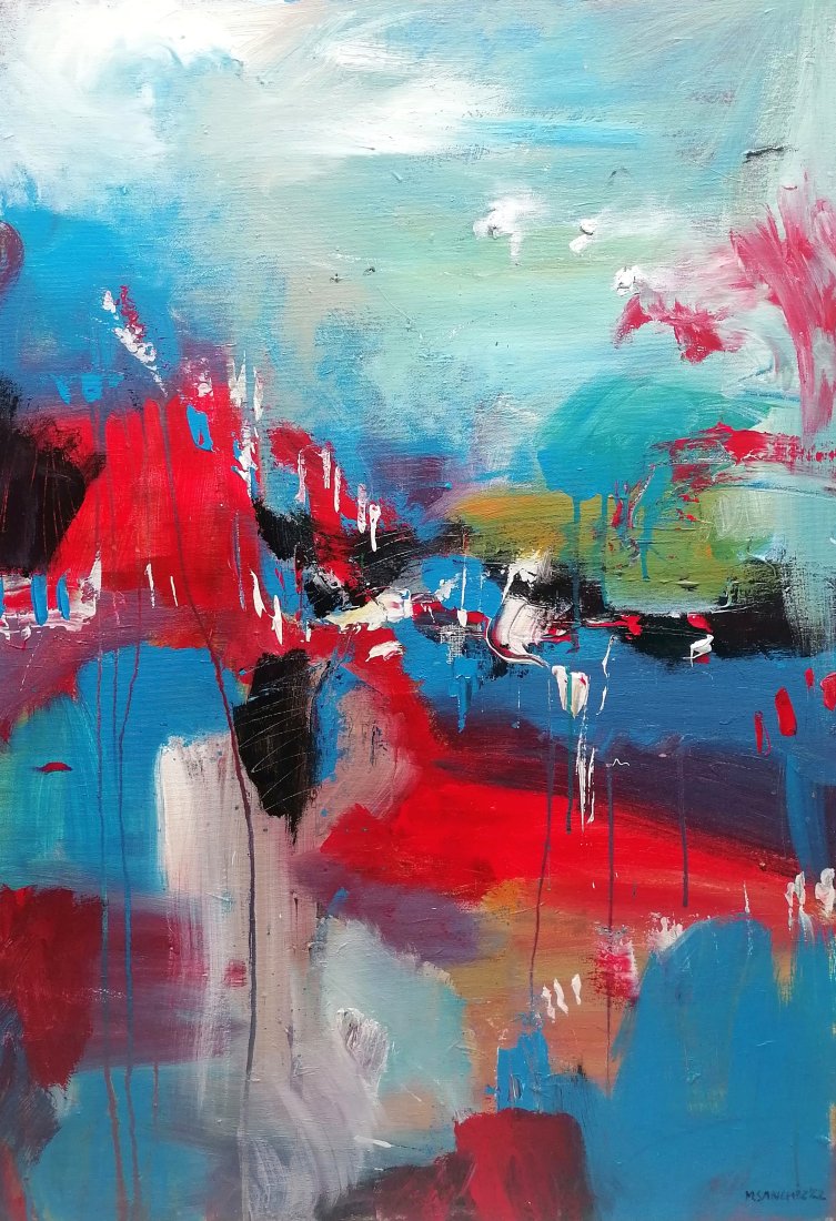 Abstrakcyjny obraz o dynamicznej kompozycji barw. Kontrastujące kolory wprowadzą pozytywną energię do salonu, sypialni albo biura. Najlepiej sprawdzą się w minimalistycznych lub industrialnych wnętrzach z czerwonymi lub niebieskimi akcentami. Charakterystyczną teksturę uzyskałam, nakładając grube warstwy farby szpachelką malarską. Boki są malowane tak, aby zachować ciągłość wizualną, dlatego obraz będzie świetnie prezentował się także bez ramy, powieszony w pionie lub poziomie. Dzięki uniwersalnej formie i wysokich walorach estetycznych sprawdzi się jako prezent na wyjątkową okazję. Zachęcam do obserwowania mojego profilu! Tworzę obrazy w różnych wymiarach oraz kolorach. Każdy jest unikatem wykonanym z dbałością o szczegóły.