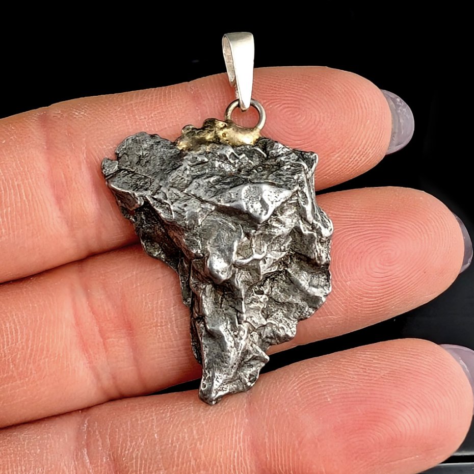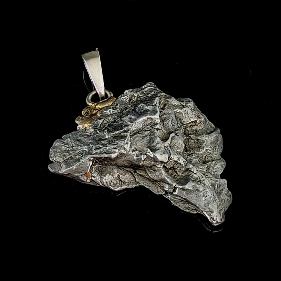 Wisiorek z meteorytem żelaznym Campo del Cielo, który znaleziono w 1576 roku w Argentynie. Krawatka srebro 925 Uniwersalny, dla niego lub dla niej. Wymiary 33 x 26 mm. Długość max 42 mm. Waga wisiora 12,8 g. Do meteorytu dołączona zostanie metryka z datą, miejscem spadku i wagą. Wisiorek zostanie zapakowany w ozdobne pudełeczko.