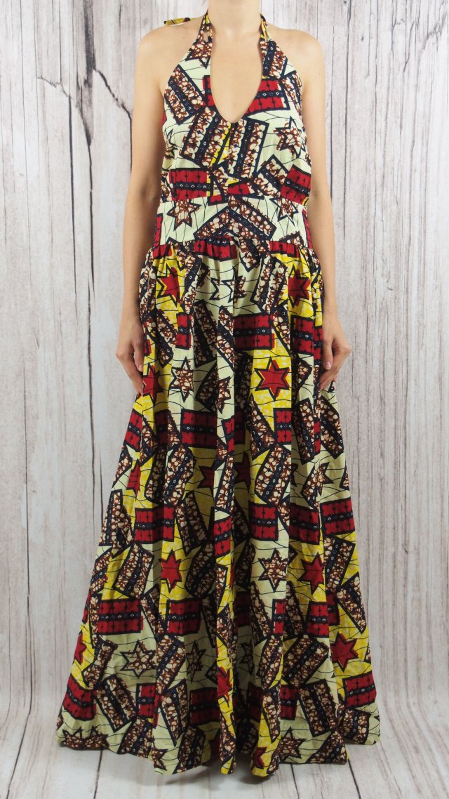 Przeboska sukienka wiązana na szyję z mięsistej grubej bawełny.