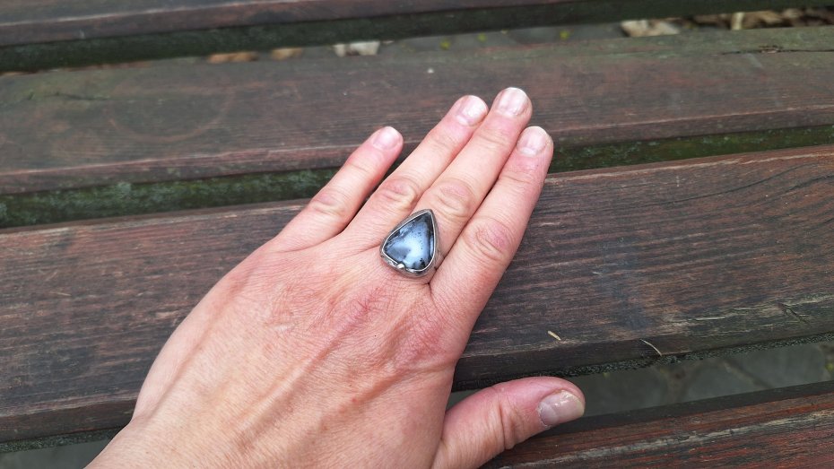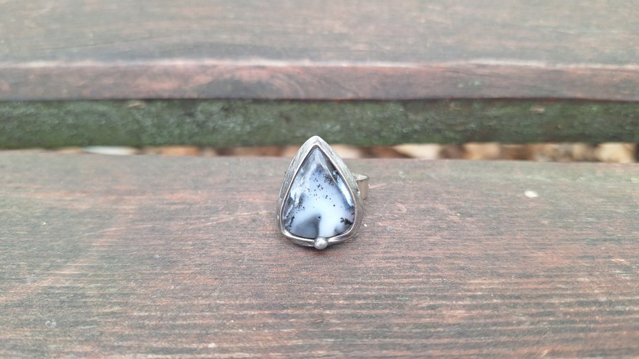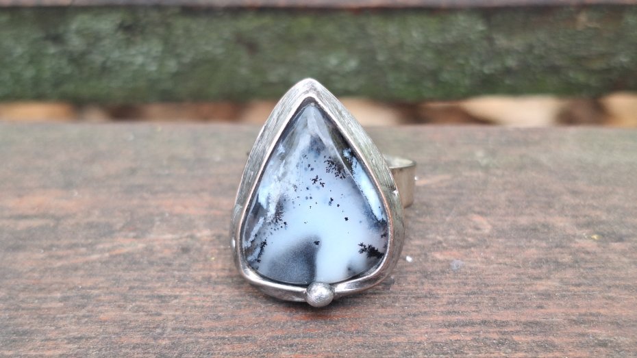 Tagi: #agat dendrytowy, #biało czarny pierścionek, #pierścionek z kamieniem, #regulowany pierścionek