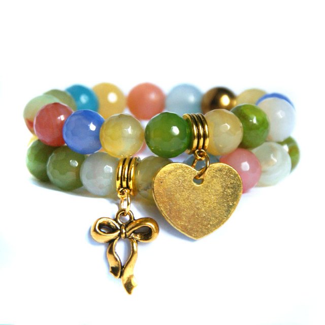 śliczna, niezwykle efektowna i okazała bransoletka na podwójnej lince elastycznej, wykonana z pięknego multikolorowego agatu (fasetowane kule 12mm) oraz 1 kuli złotego hematytu i metalowych elementów (dwustronna zawieszka).... AGAT OGNISTY - Wzmacnia siłę życiową, energię i pasję; pomaga podejmować decyzje, zachęca do działania.... ... UWAGA! cena dot. 1 bransoletki - zobacz inne do kompletu ;-) BRANSOLETKA PASUJE NA STANDARDOWY NADGARSTEK 15-16cm..... .BIŻUTERIA ZAWSZE PODRÓŻUJE W OZDOBNYM OPAKOWANIU :-)