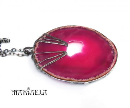 Serdecznie zapraszam do spojrzenia na wyjątkowy wisior wykonany z agatu. Długość wisiorka razem z oczkiem 9,8 cm. Trwałe wykończenie witrażowe. Używam wyłącznie ekologicznej, bezołowiowej cyny. Prawdziwy rarytas :-) Pojedynczy projekt! Zapraszam! MARIAELA