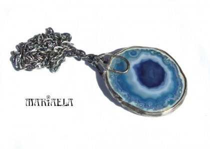 Serdecznie zapraszam do spojrzenia na wyjątkowy wisior wykonany z pięknie wybarwionego agatu. Średnica plastra około 5,5 cm. Trwałe wykończenie witrażowe. Używam wyłącznie ekologicznej, bezołowiowej cyny z domieszką srebra. Prawdziwy rarytas :-) Pojedynczy projekt! Zapraszam! MARIAELA
