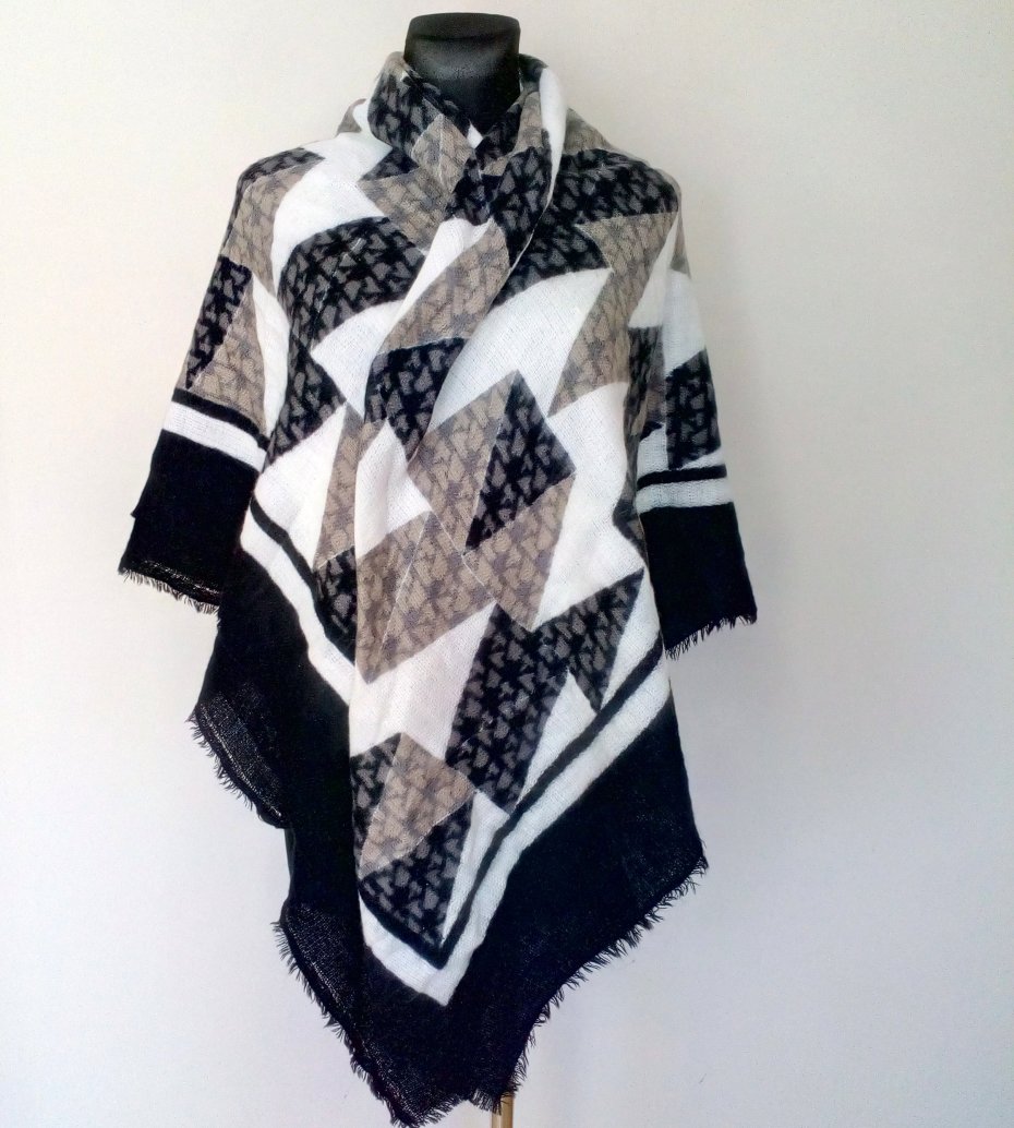 Duża chusta z miłego akrylu z krótkimi frędzlami po brzegach