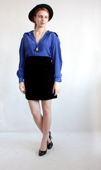 Czarna ołówkowa spódnica wykonana z miękkiego, bawełnianego aksamitu. Posiada podszewkę.