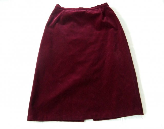 Spódnica z wysokim stanem, z tylu posiada rozporek, zapinana na zamek i guzik z tylu.