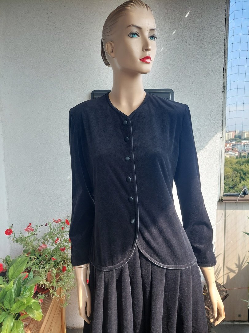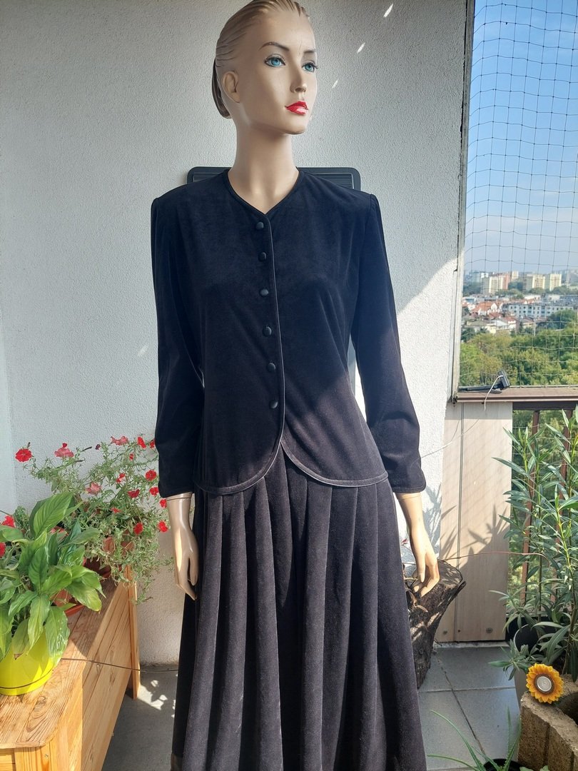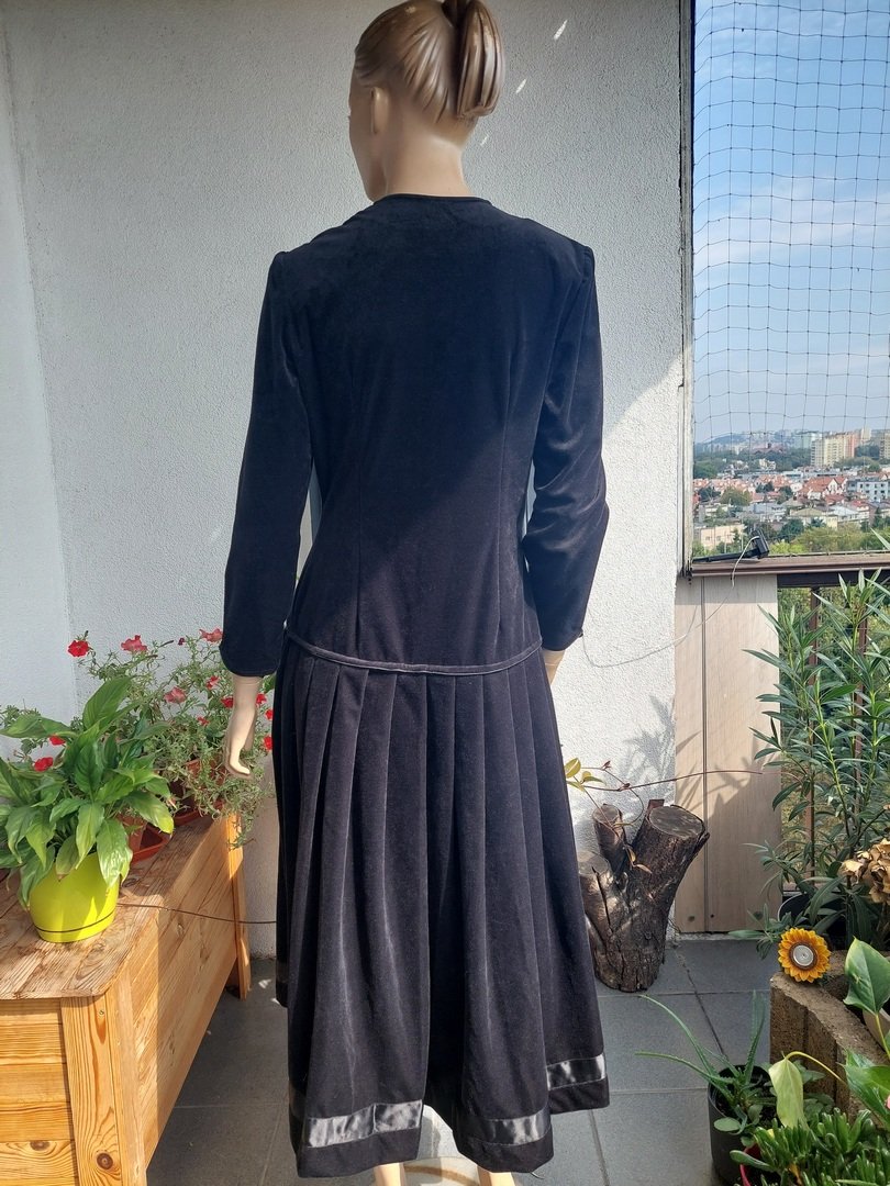 śliczna, czarna sukienka vintage marki twin. materiał aksamitny 100% poliester. zapinana na oblekane guziczki, wykończona lamówką. bez podszewki. stan bardzo dobry, rozmiar z metki M, proszę sprawdzić wymiary.