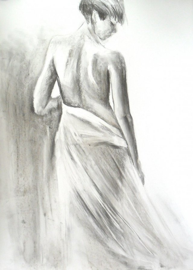 Akt w technice węgla na brystolu kredowym.Format 50x70cm.