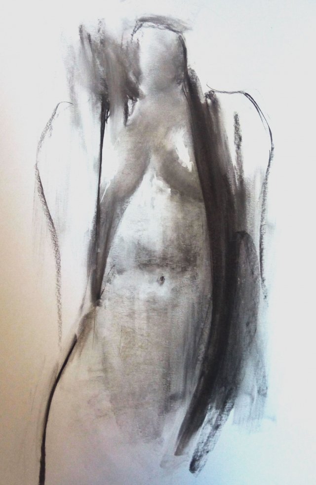 Rysunek w technice węgla na brystolu kredowym w tonacji ciepłej bieli.Format 50x70cm.