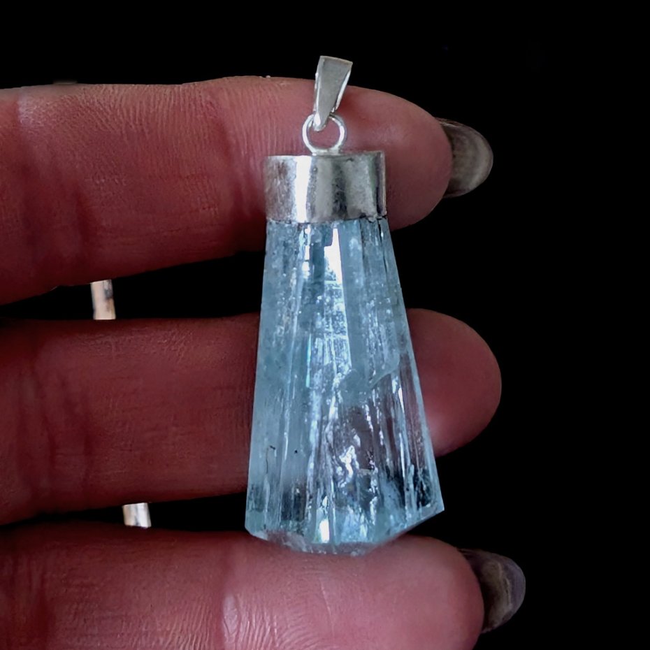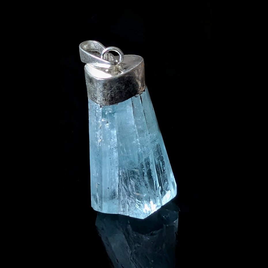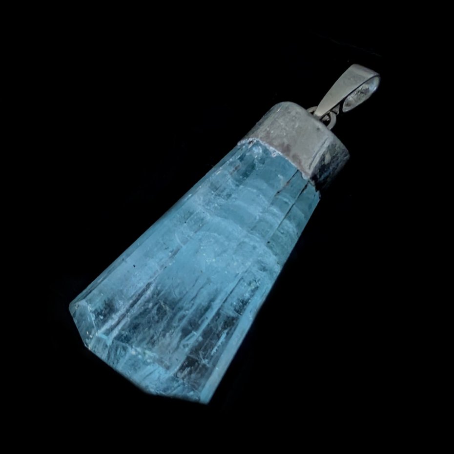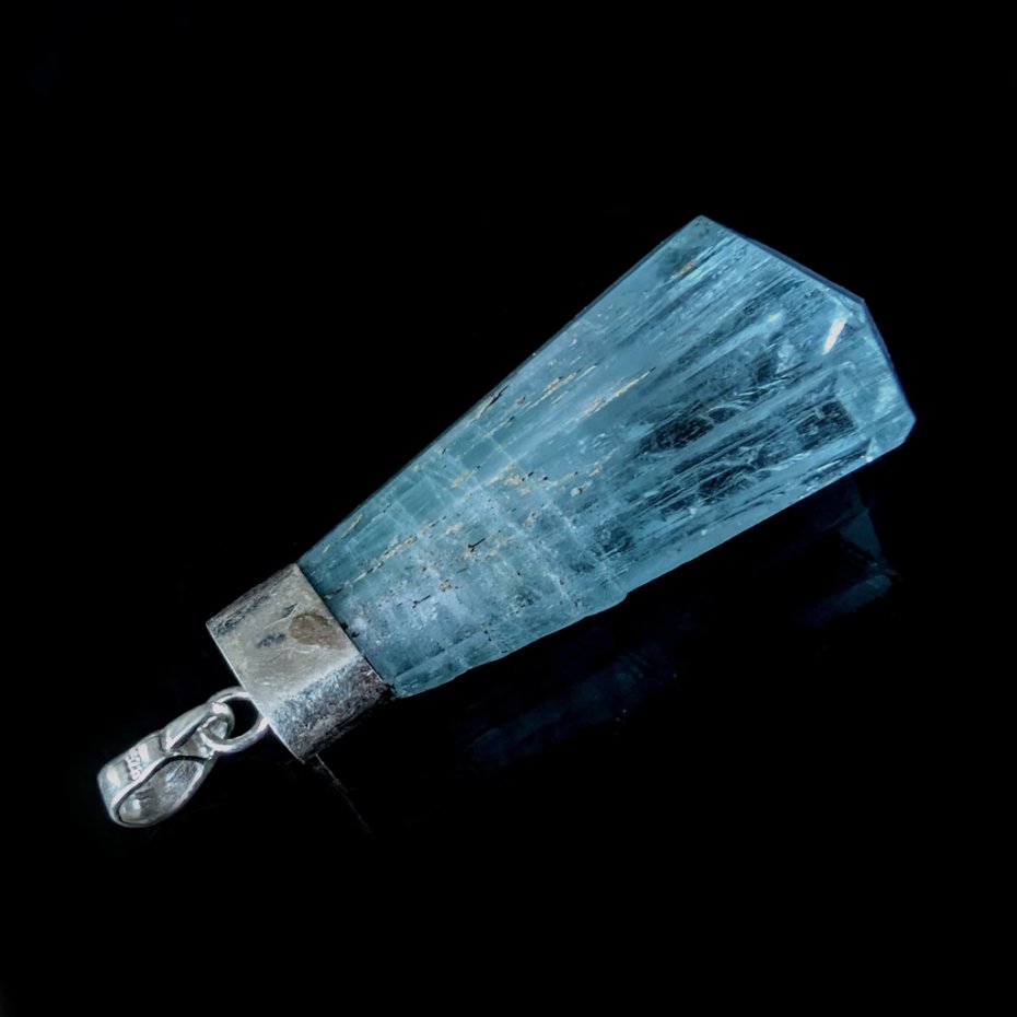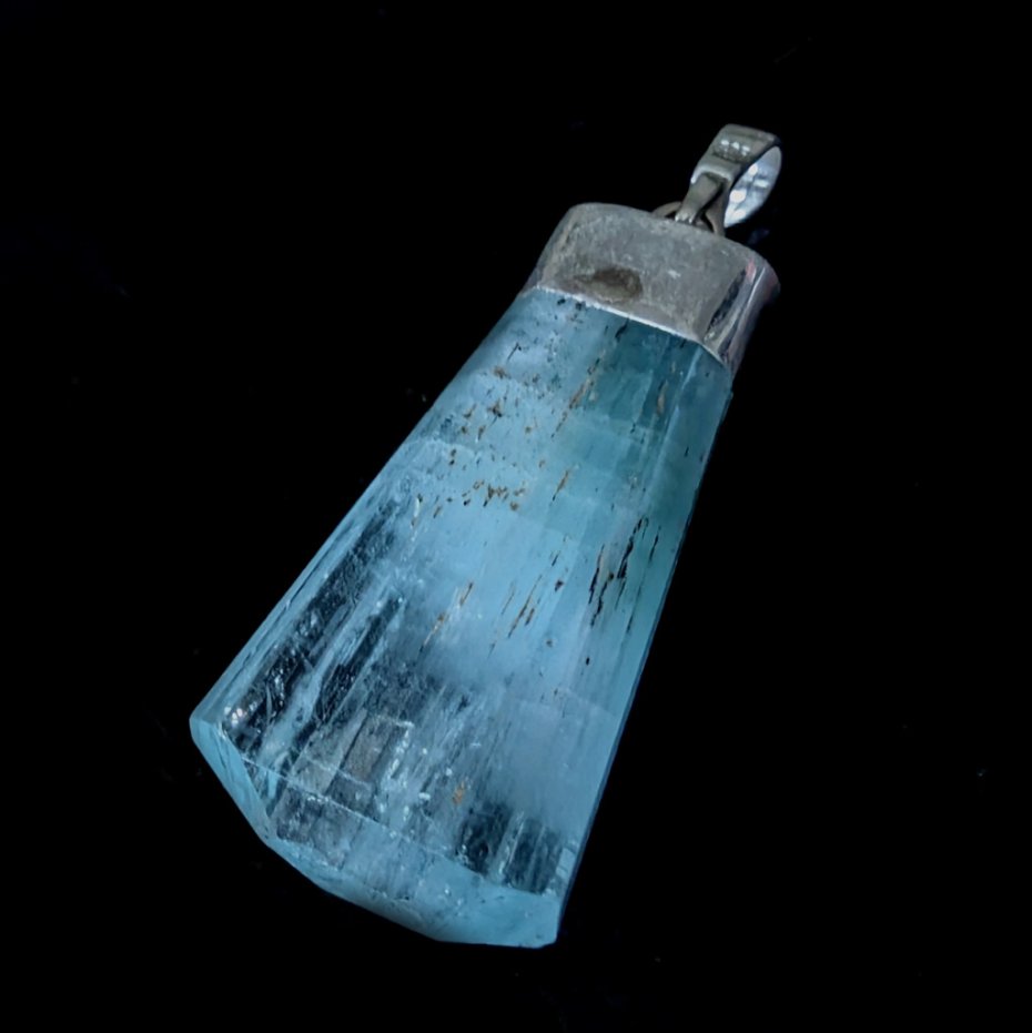 Bardzo okazały, piękny akwamaryn o ciekawym kształcie i cudnym kolorze morskiej toni, naturalne spękania na tafli, krawatka srebro próby 925. Wisior o wymiarach 36 x 18 mm. Z krawatką długość 42 mm. Waga 10,8 grama. Polecam, przepiękny. Wisior zostanie zapakowany w ozdobne pudełeczko.