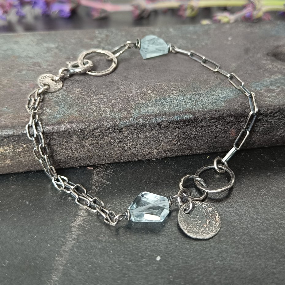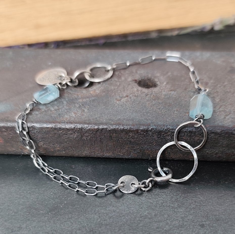 Tagi: #akwamaryn, #bransoletka z kamieniami, #srebro 925 oksydowane, #surowa biżuteria