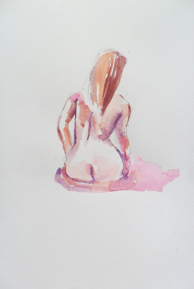 Akt na papierze akwarelowym 300g,format 30x42cm.Postać umieszczona centralnie na sporym tle.