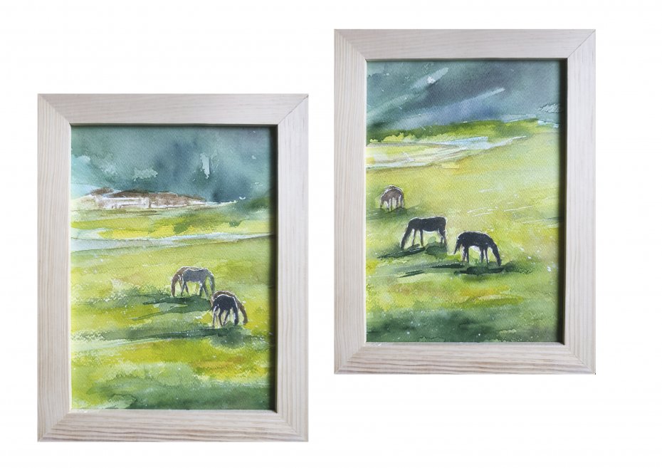 Akwarela ręcznie malowana, wykonana farbami akwarelowymi znanych producentów; na białym, wysokogatunkowym 300g papierze (15 cm x 20 cm),