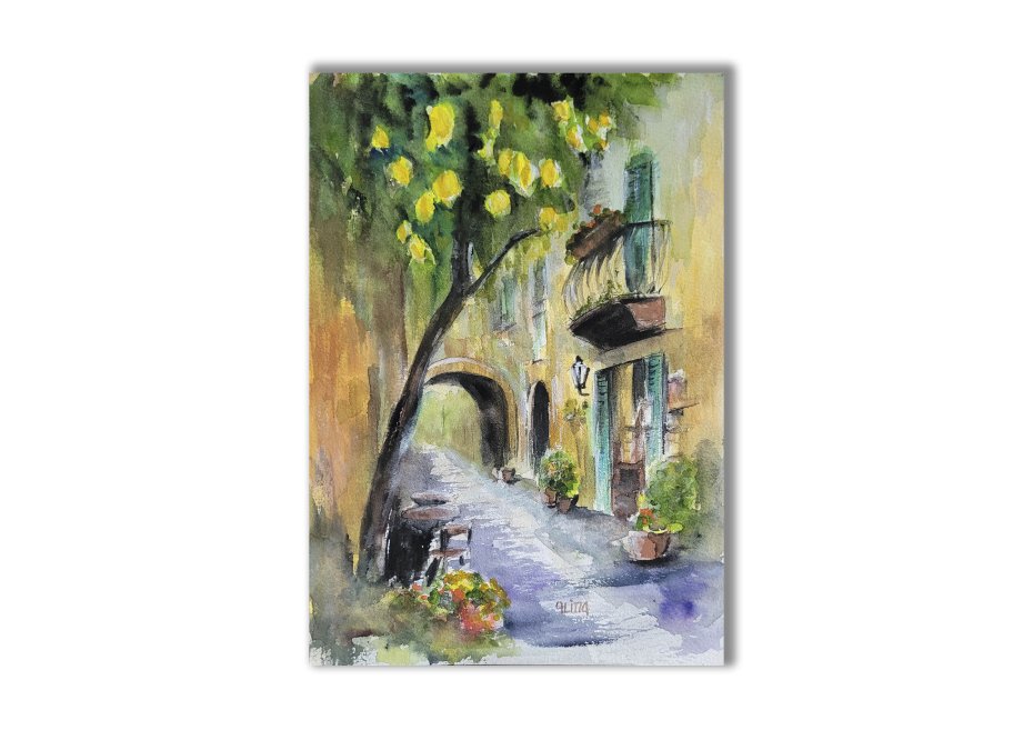 Tagi: #akwarela, #cytryny, #uliczki, #włochy