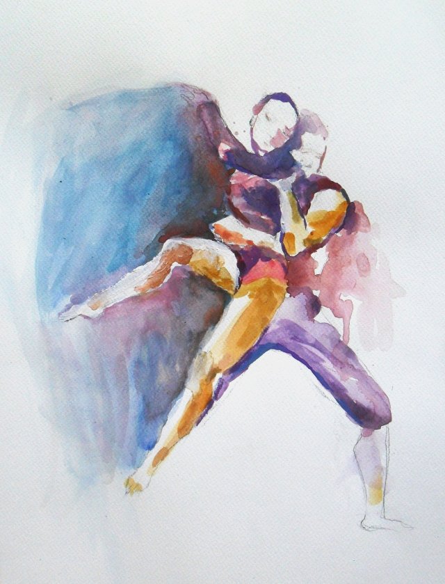 "Taniec" na papierze akwarelowym (300g),format pracy 30x40cm.