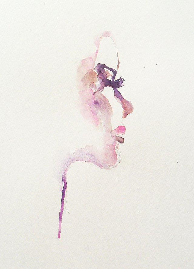 Zmysłowa kobieca twarz na papierze akwarelowym.Format 30x42cm.