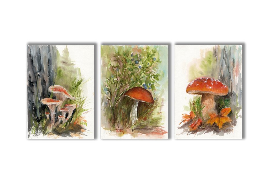 5.  > Akwarele ręcznie malowane oprawione "Grzybki" zestaw 3szt (nr 7080295)