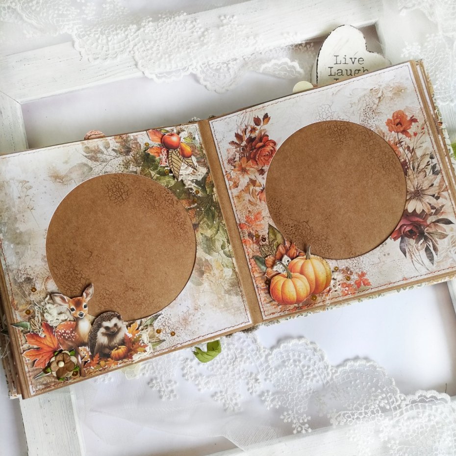 Zachowaj atmosferę jesieni dzięki uroczemu albumowi fotograficznemu, przeznaczonemu na 46 zdjęć z jesiennej sesji. Okładka z liskiem i jeżykiem wśród kolorowych liści oddaje ciepło, przytulność i wyjątkowy nastrój tej pory roku.