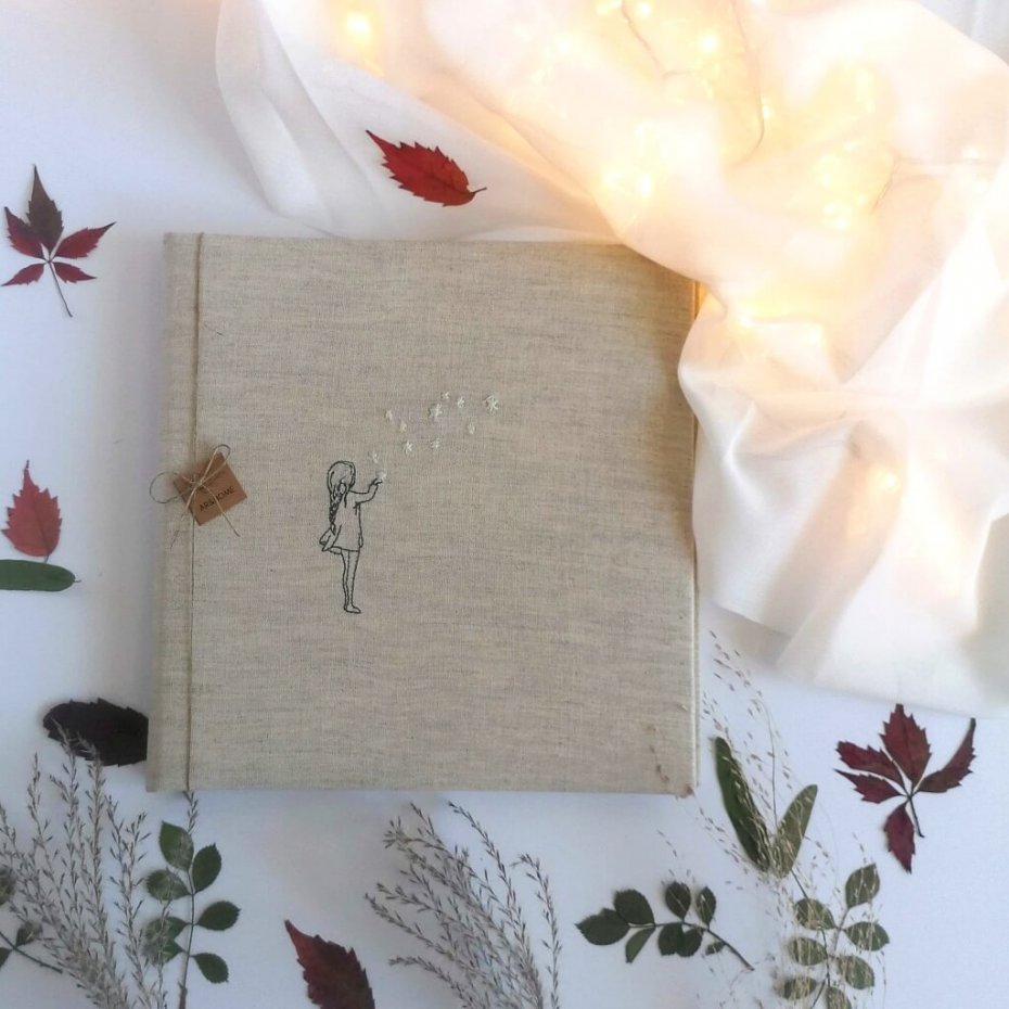 Tradycyjny album ręcznie oprawiony tkaniną z dekoracyjnym haftem. Doskonały do przechowywanie wspomnień- zdjęć, pamiątek, pocztówek, biletów- wszystkiego co przywołuje pamięć o najpiękniejszych chwilach.