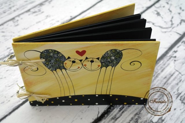 Ręcznie malowany farbami akrylowymi (ekologicznymi) album w drewnianej oprawie. Ilość kartek to 25 sztuk, możliwość wyboru ich koloru (czarne, białe). Możliwość personalizacji albumu poprzez dopisanie imienia.