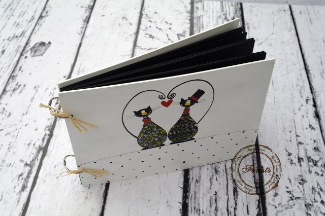 Ręcznie malowany farbami akrylowymi (ekologicznymi) album w drewnianej oprawie. Ilość kartek to 35 sztuk, możliwość wyboru ich koloru (czarne, białe). Możliwość personalizacji albumu poprzez dopisanie imion i daty ślubu pary młodej. Album sprawdza się również jako KSIĘGA GOŚCI.