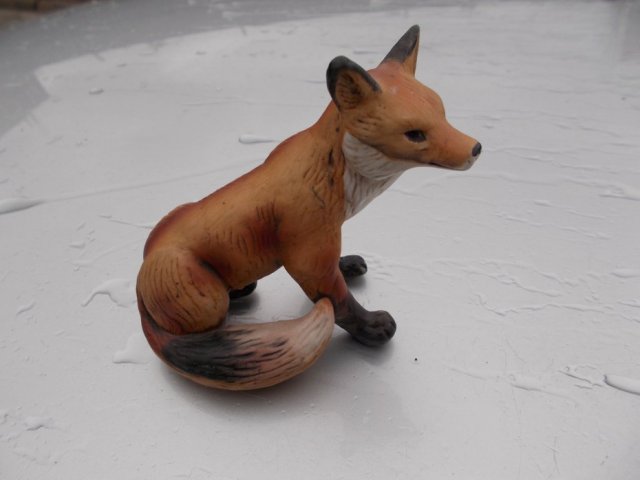 Calkiem spora Figurka. Wygląda na Porcelanę ,ale głowy nie dam.Dzwięczna, :) Nie sygnowana. Wykończenie matowe, ręcznie malowane, błyszczące oczka. Bardzo urodziwy Lisek jak żywy ;)