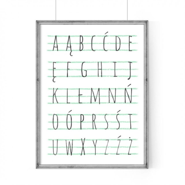 Plakat przedstawiający alfabet polski. Idealny do pokoju dziecięcego , świetnie sprawdzi się również jako prezent.