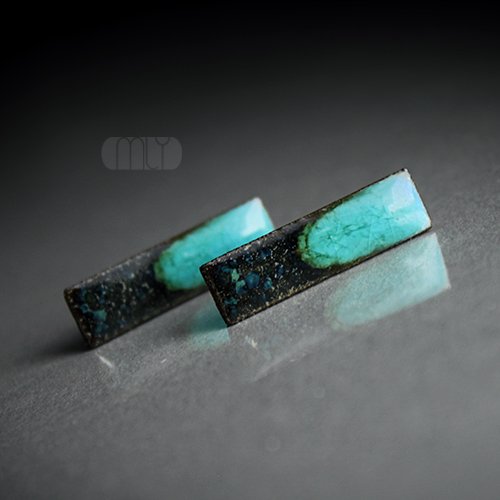 Ceramiczne podłużne kolczyki, ręcznie wykonane z delikatnej gliny kamionkowej, jednostronnie szkliwione mieszanką zielonych szkliw z efektem plamek, tył matowy czekoladowobrązowy na antyalergicznych sztyftach.długość ok 2,5cm. Polecam