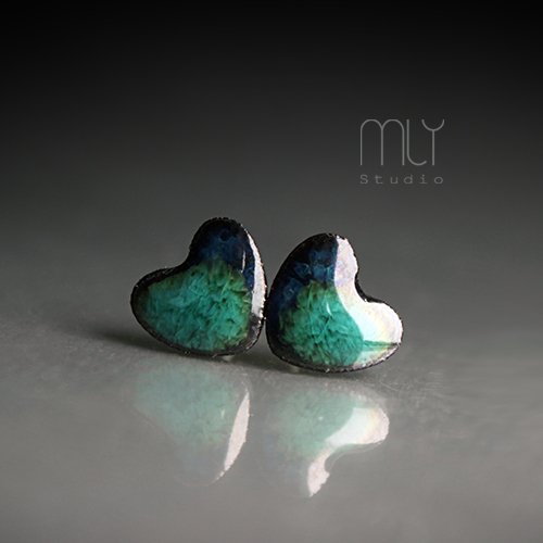 Ceramiczne kolczyki w formie sztyftów, ręcznie wykonane z delikatnej gliny kamionkowej, jednostronnie szkliwione zielonym szkliwem z efektem plamek i subtelnym połyskiem, na antyalergicznych sztyftach w kolorze srebrnym.Średnica ok. 12mm.. Polecam . Termin realizacji zamówienia to 1-2 dni.