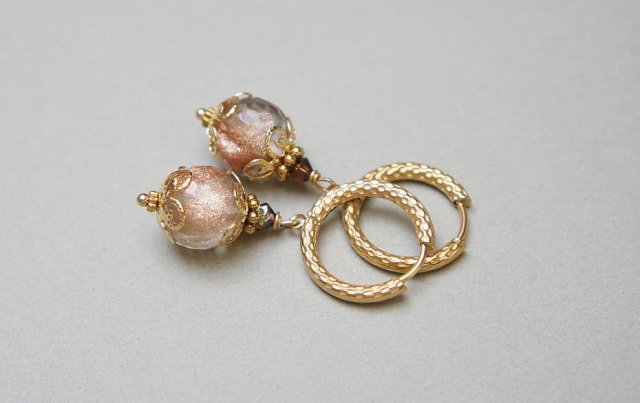 złoto srebrne, błyszczące kolczyki na wygodnych, otwartych biglach. el...