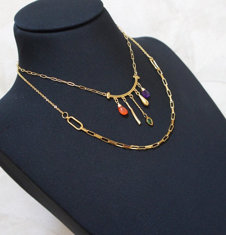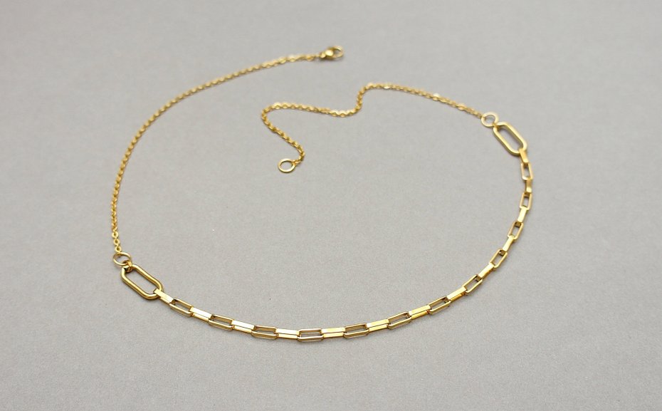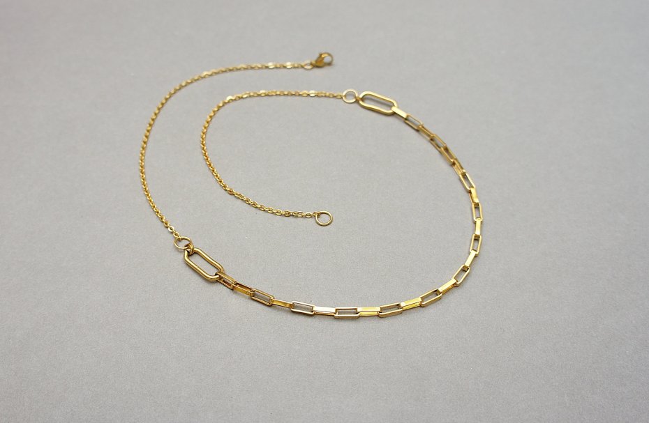 Krótki naszyjnik wykonany w całości z pozłacanej stali szlachetnej. Całkowita długość naszyjnika ok. 50cm. Biżuteria ozdobnie zapakowana.