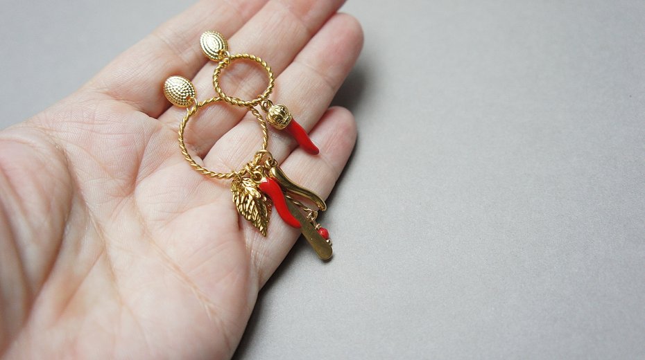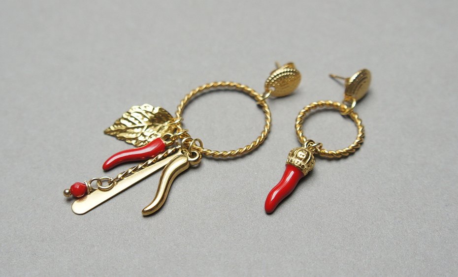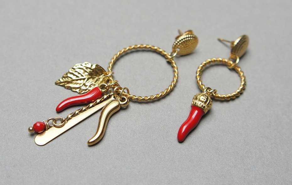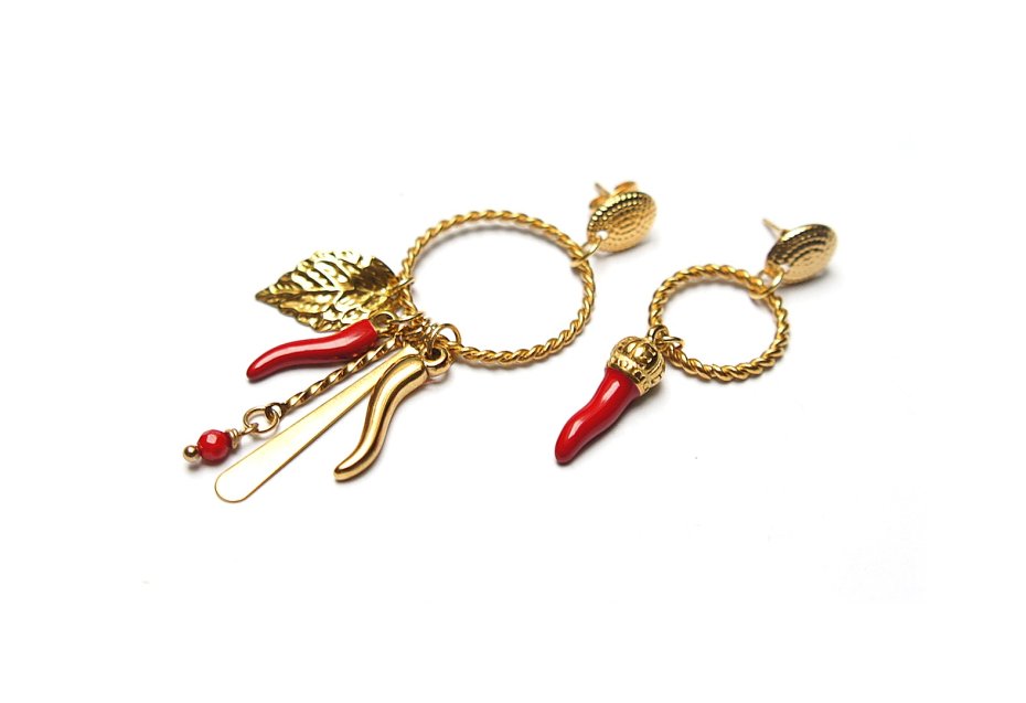 Asymetryczne kolczyki wykonane ze stali szlachetnej oraz kuleczki czerwonego korala [3mm]. Długość kolczyków: ok. 6,5cm i 4,9mm. Biżuteria ozdobnie zapakowana. Do kompletu można dokupić naszyjniki przedstawione na zdjęciach.