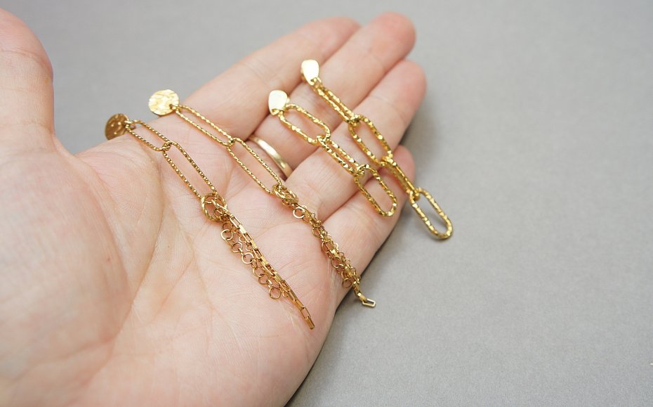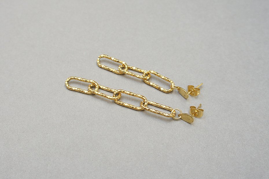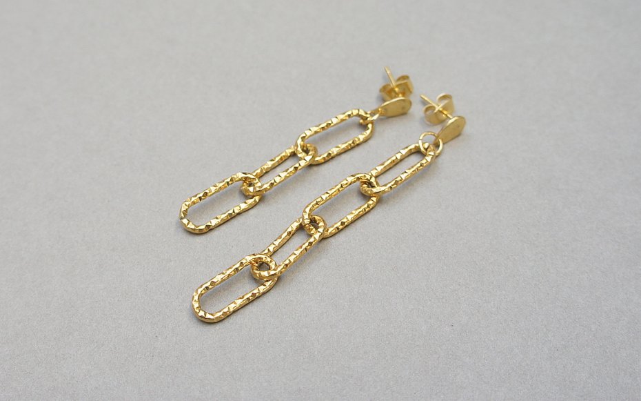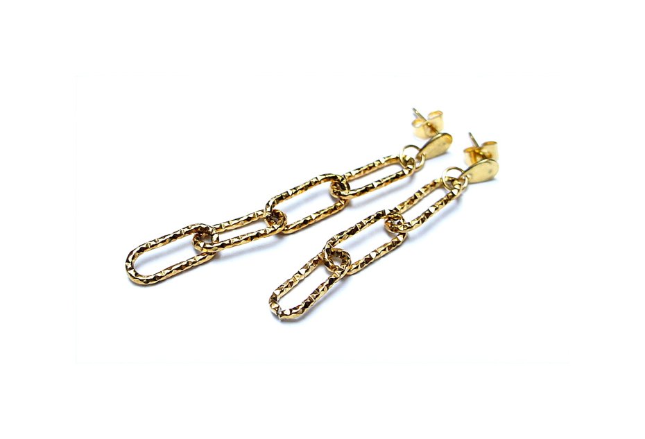 Asymetryczne kolczyki wykonane z pozłacanej stali szlachetnej. Długość kolczyków: 5,5cm i 6,5cm. Zapięcie - sztyfty.