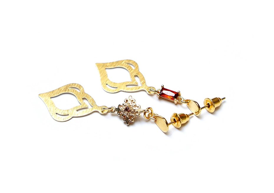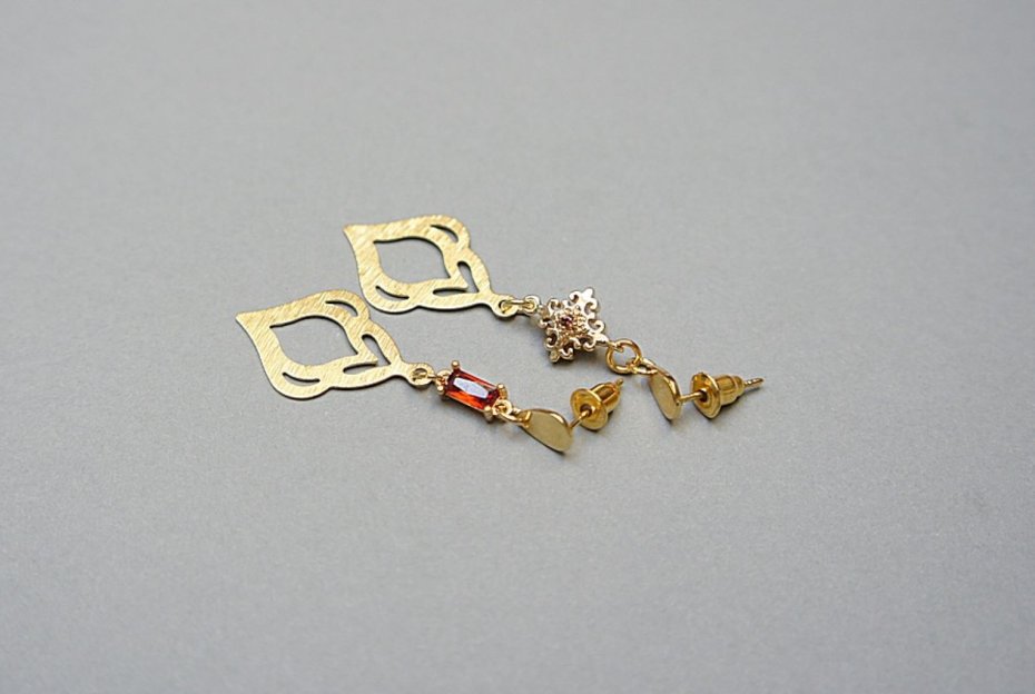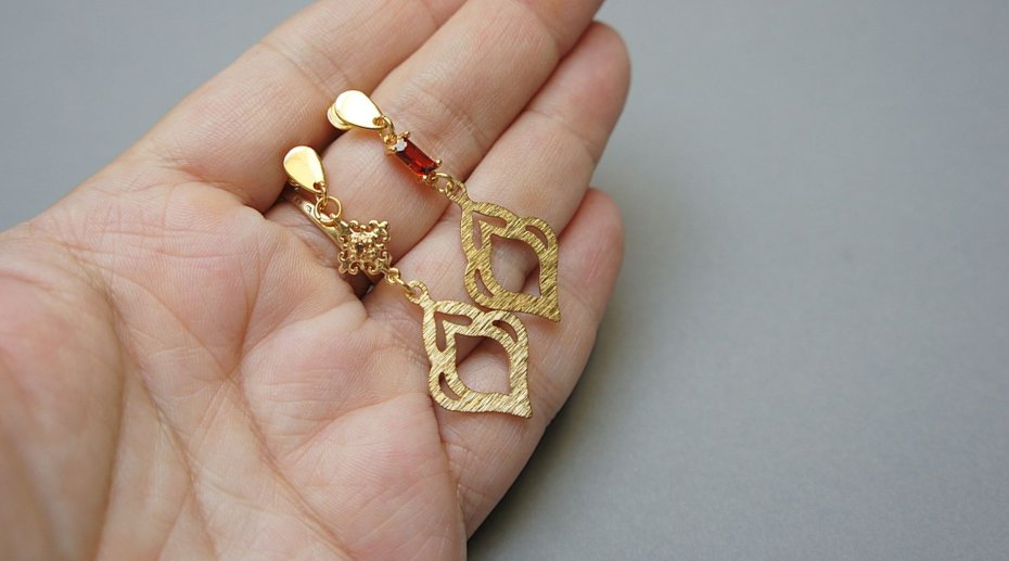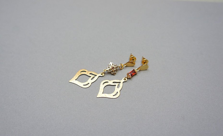 Kolczyki z serii "nie do pary" wykonane z pozłacanej stali szlachetnej i mosiądzu. Łączniki z mosiądzu platerowanego z obsadzonymi cyrkoniami. Długość kolczyków: 4,5cm i 5,1cm. Biżuteria ozdobnie zapakowana.