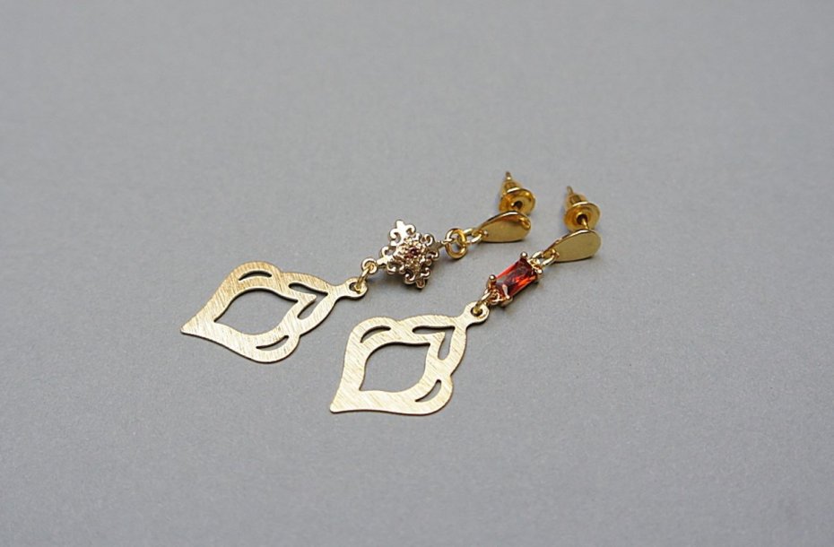 Kolczyki z serii "nie do pary" wykonane z pozłacanej stali szlachetnej i mosiądzu. Łączniki z mosiądzu platerowanego z obsadzonymi cyrkoniami. Długość kolczyków: 4,5cm i 5,1cm. Biżuteria ozdobnie zapakowana.