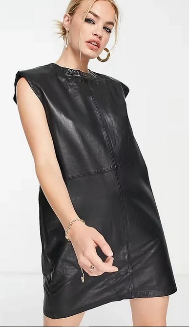 Bardzo stylowa ponadczasowa mini sukienka skórzana/ekoskórzana - bardzo trudno zweryfikować, bo nie ma metki ze składem i mimo, że raczej jestem w stanie rozróżnić, w tym przypadku nie mam pewności- wygląda i zachowuje się jak mięciutka skóra , ale nie mam 100% pewności, w każdym razie wyjątkowo stylowa i marka zapewnia jakiśc, długoś90 pachy 46x2 odcięcie 43x2dol46x2 stan idealny https://www.asos.com/pl/allsaints/allsaints-mika-czarna-skorzana-sukienka-mini-o-fasonie-podkoszulka/prd/203119122