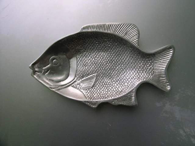 Piękny design i doskonałe wykonanie. Większość takich Ryb jest dziełem designerów tj.Arthur Court,czy też Bruce Fox.S ą to przedmioty z aluminium,bądz metalowe aluminium plated - jak to z angielska nazywa się :) Fantastyczna, rzadko spotykana rzecz :)