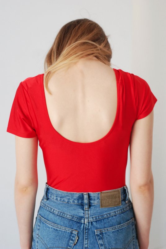 Super body w całości wykonane z lycry. Intensywna czerwień z lekkim połyskiem, z tyłu głębokie wycięcie na plecy. Pięknie podkreśla sylwetkę i!