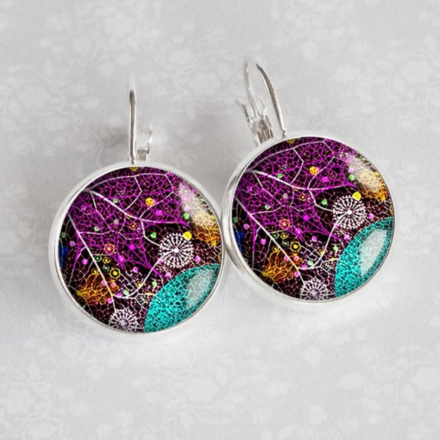 Kolczyki z unikatową grafiką, zatopioną pod wypukłym szkiełkiem, w posrebrzanej oprawie. Grafika jest najwyższej jakości, wyraźna i nasycona. Bigle posrebrzane, zapinane, sztywno przymocowane do oczka, hipoalergiczne- nie zawierają niklu i ołowiu. Kaboszony szklane z grafiką są unikatowe, wykonane ręcznie według mojego projektu z najwyższą starannością, dlatego biżuteria ta jest jedyna w swoim rodzaju i niespotykana.