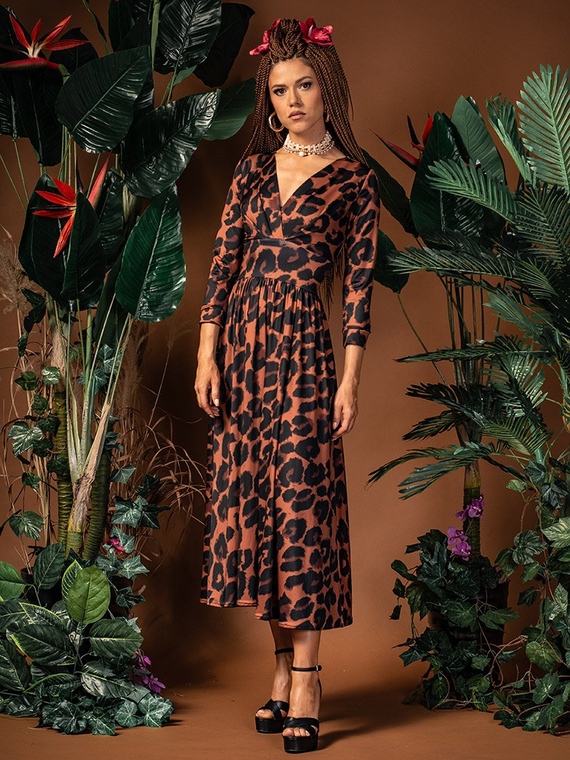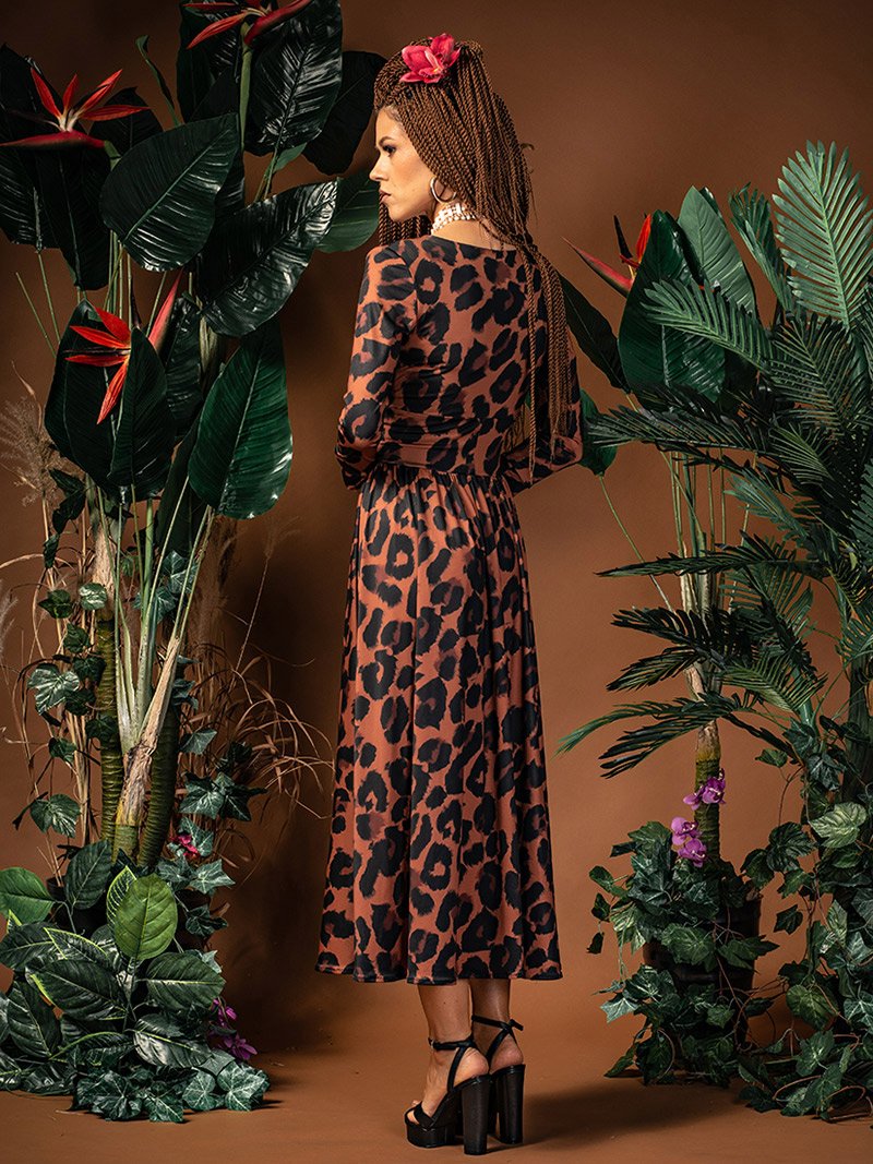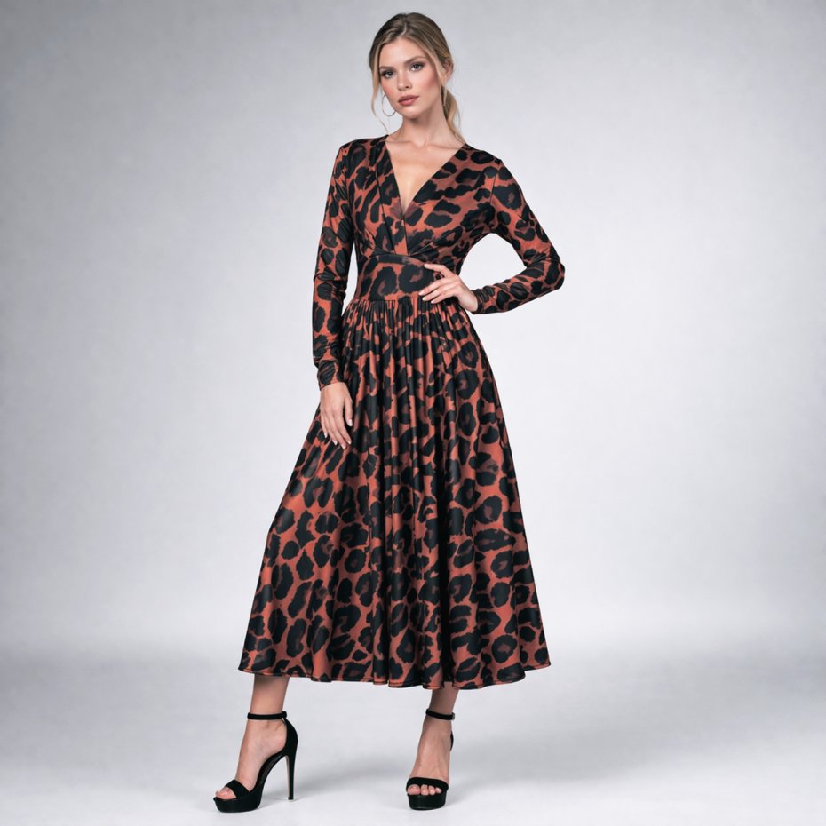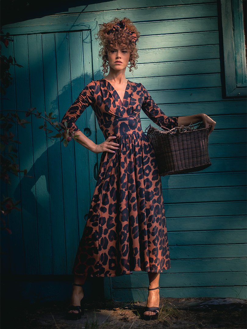 Rozkloszowana sukienka o ponadczasowym kroju i fasonie, który współgra z wieloma typami kobiecych sylwetek.