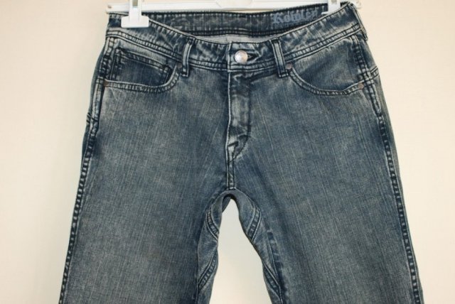 Spodnie jeansowe amerykańskiej marki Volcom, w szarym kolorze Materiał 95% bawełna, 5% spandex. Rozmiar z metki 32. Fabrycznie przecierane. Stan bardzo dobry. Zostały przez kogoś skrócone i podwinięte.