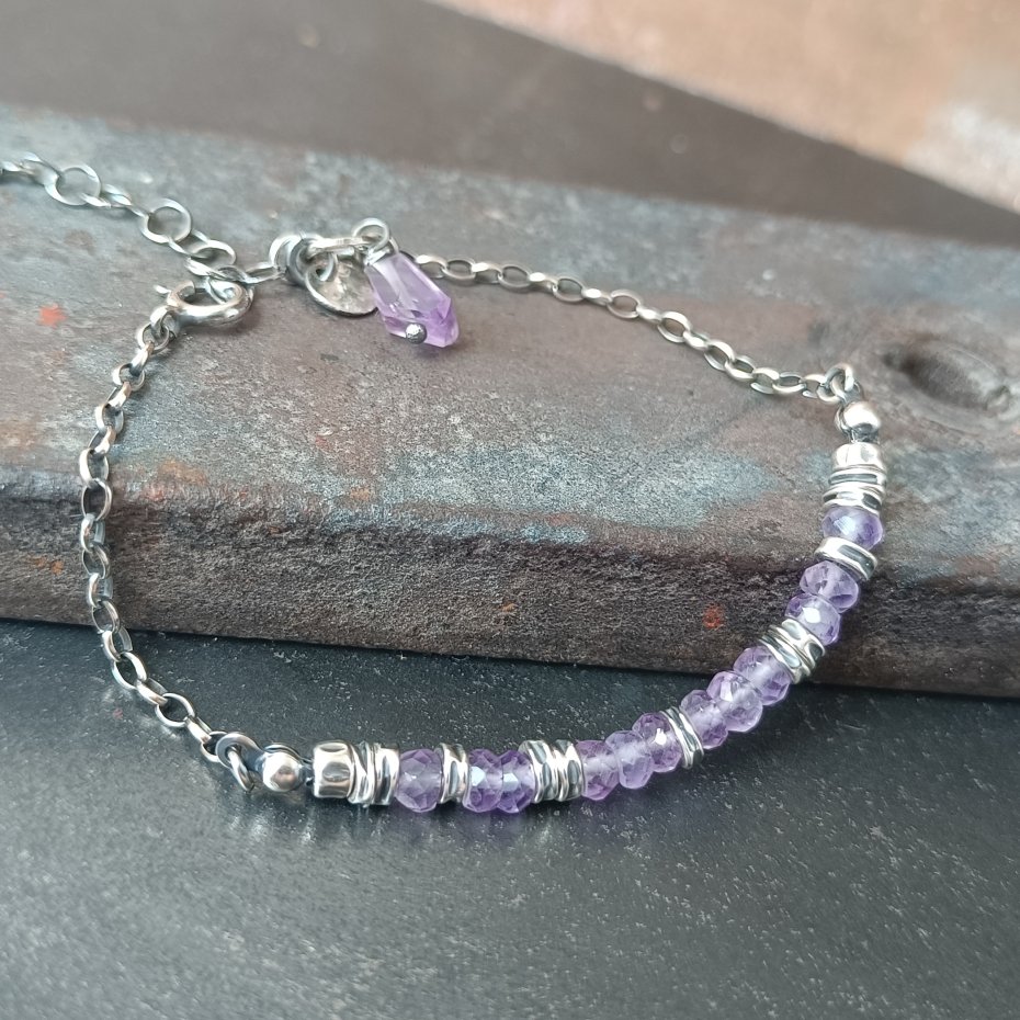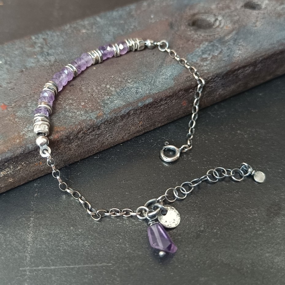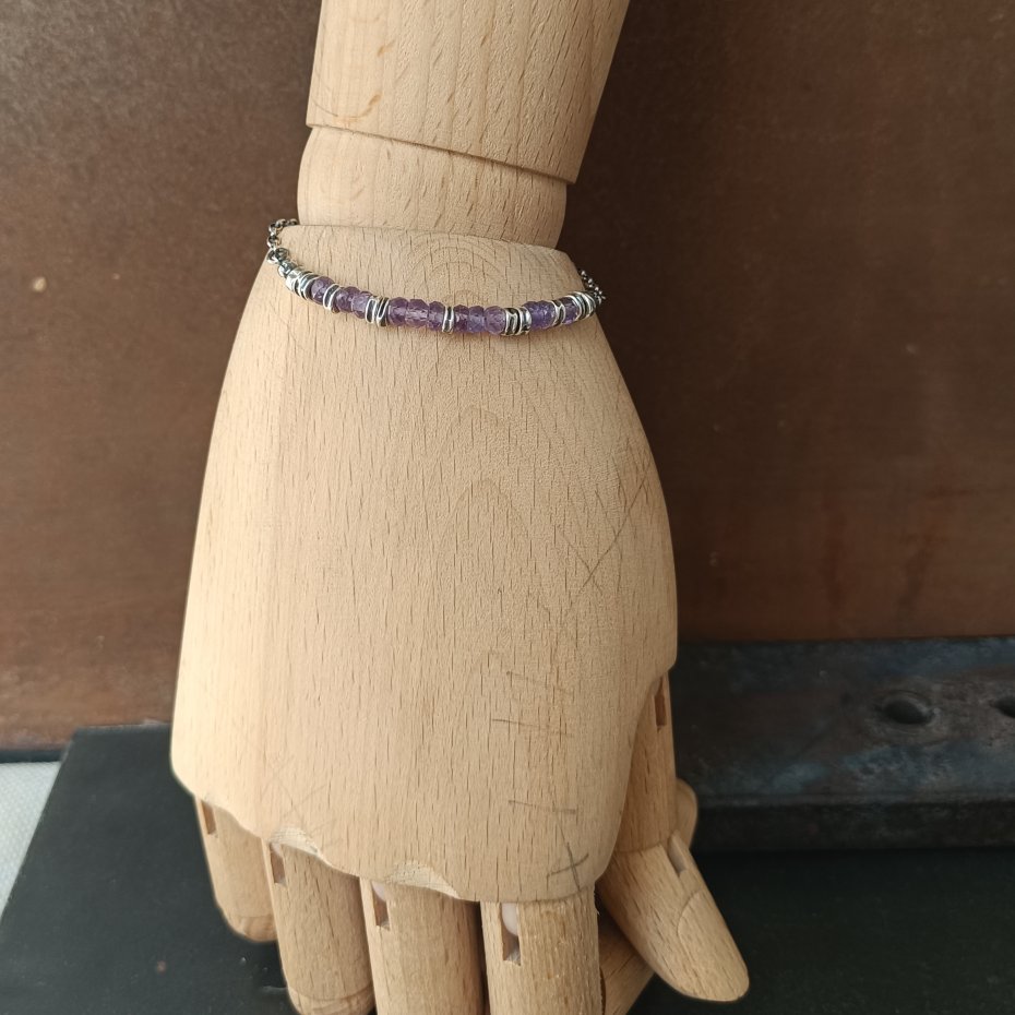 Tagi: #ametyst, #bransoletka z zawieszką, #minimalistyczna bransoletka, #srebro oksydowane