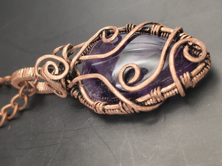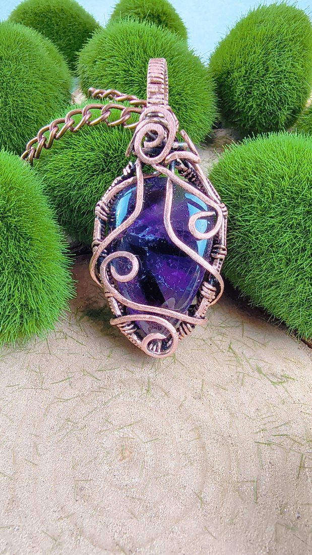 Tagi: #ametyst, #miedź, #naszyjnik z wisiorem, #wire wrapping