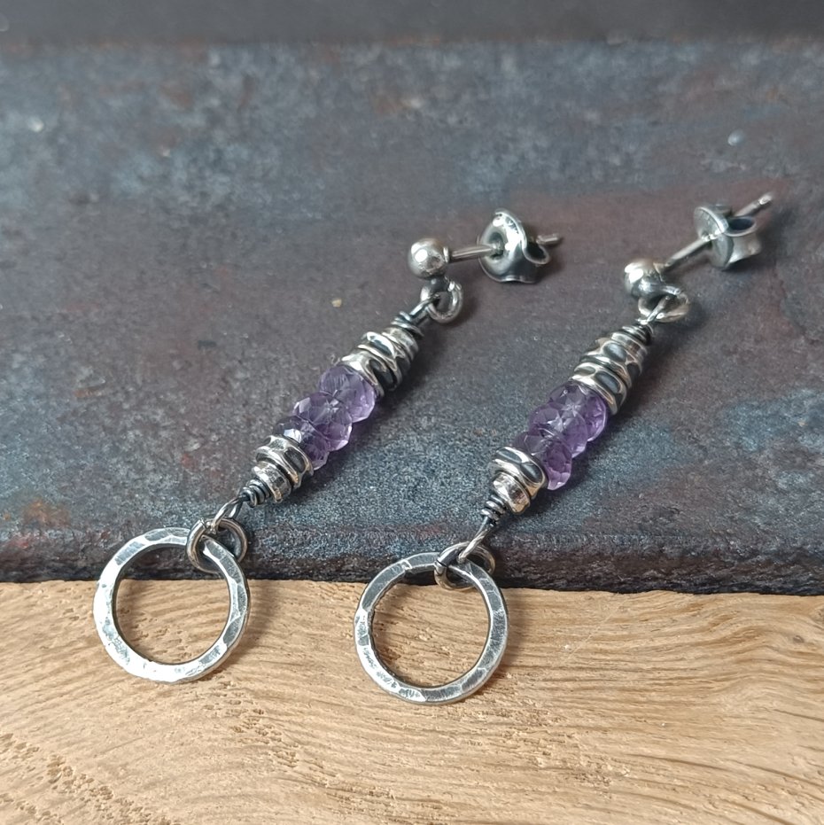Kolczyki zostały wykonane ze srebra ze oraz z naturalnego ametystu w jasnofioletowym kolorze.