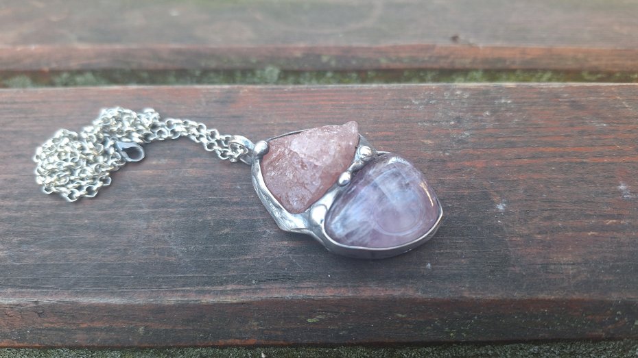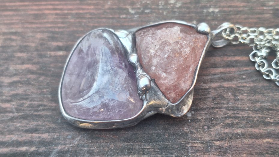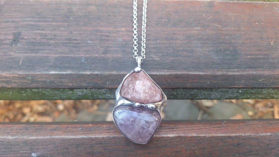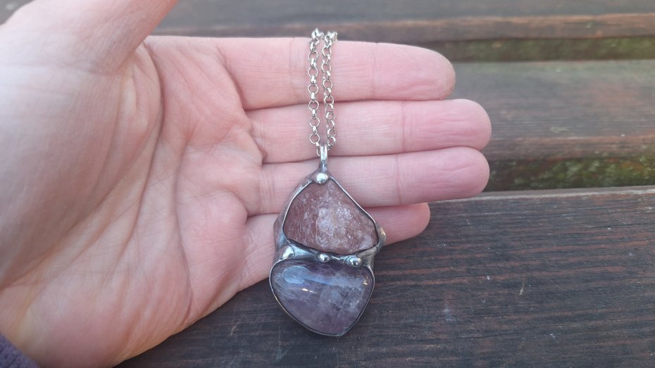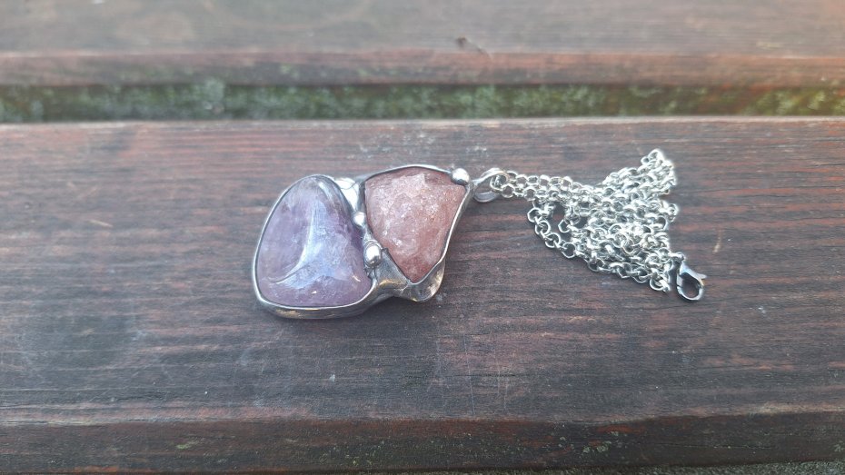 Tagi: #ametyst, #fioletowy wisiorek, #różowy kwarc, #wisiorek z ametystem