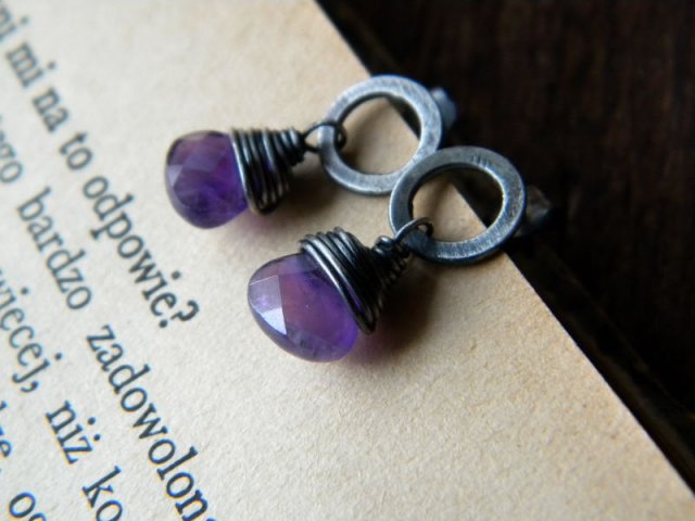 kolczyki.oksydowane srebro 925 i ametysty. .długosc 1,9cm.