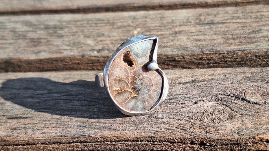 Tagi: #amonit, #brązowy pierścionek, #pierścionek z amonitem, #surowy pierścionek