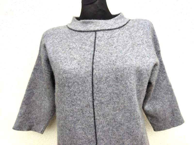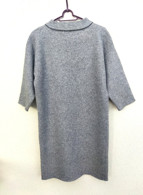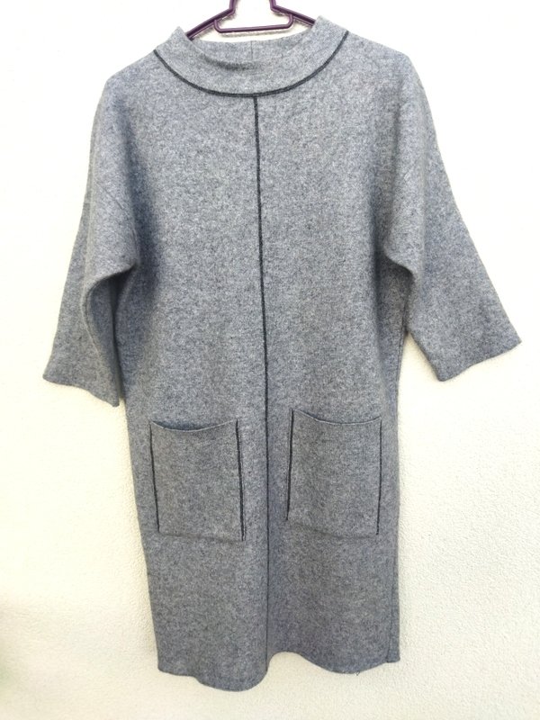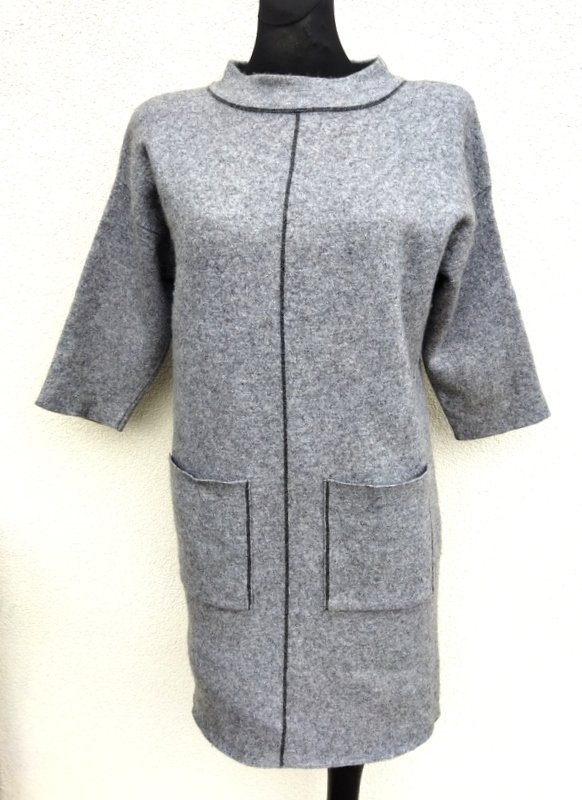 dzianinowa sukienka o świetnym składzie jakościowym w jasnoszarym kolorze. minimalistyczny prosty krój z dwiema naszywanymi kieszeniami.