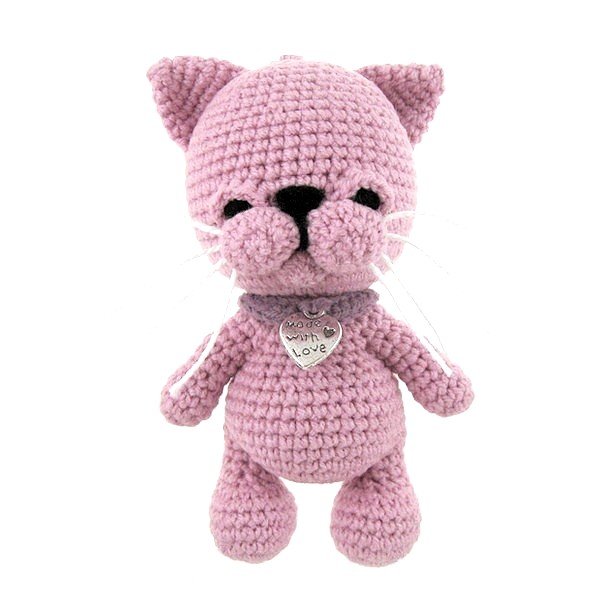 Brelok z szydełkowym kotkiem. Wzrost kotka około 8 cm. Wypełniony specjalnym tworzywem. Można prać. Instrukcję prania dołączam do breloka. Serduszko metalowe.