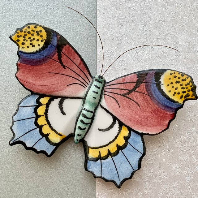 Anfora Agueda Portugal Butterfly ❀ڿڰۣ❀ Ręcznie malowany motyl z porcelany - PIĘKNY. Bardzo urocza ozdoba z porcelany, może leżeć bądź zawisnąć. Markowy, kolekcjonerski sygnowany Anfora Agueda Portugal 156. Bardzo efektowny w żywych kolorach, w całości ręczna malatura.